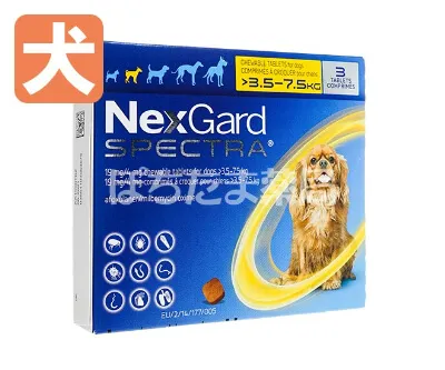 ネクスガードスペクトラはテレビCMでおなじみのノミ・マダニ駆除薬ネクスガードに、フィラリア予防とおなかの虫の駆除の効能を加えたオールインワンな寄生虫ケアのお薬です。
