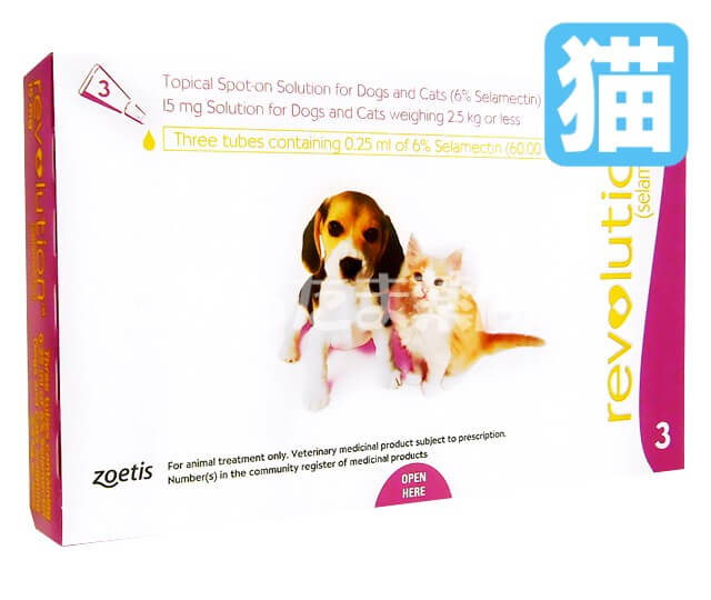 レボリューションは猫のフィラリア予防、ノミ、猫回虫、耳ダニの駆除が同時に行える寄生虫対策のお薬です。