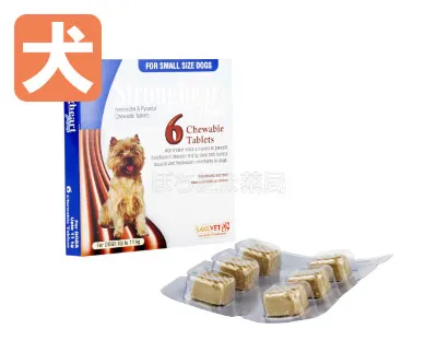 小型犬用2箱を注文した場合、3チュアブル錠または6チュアブル錠入りのパッケージでの発送となる場合がございます。画像をご確認ください。