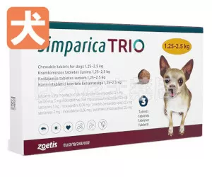 シンパリカ・トリオ(犬用)は、フィラリア予防とノミ・マダニ、内部寄生虫駆除薬です。