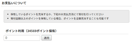 ポイント入力欄に寄付したいポイント数を入力します。