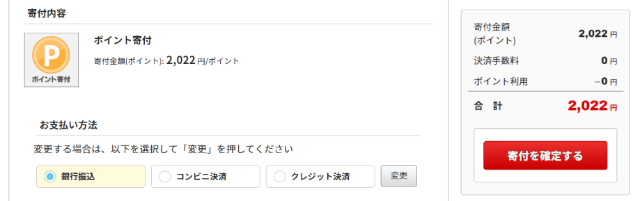 また、お支払い方法により寄付可能なポイントが異なります。詳しくはこちら