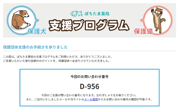 このマニュアルページは、ぽちたま薬局が運営する「支援プログラム」に参加している保護団体をご支援いただける一般会員様用のページになります。