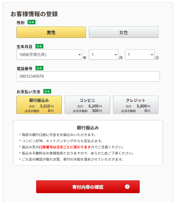 受付完了後、選択された支払方法にそってお支払いをお願いいたします。