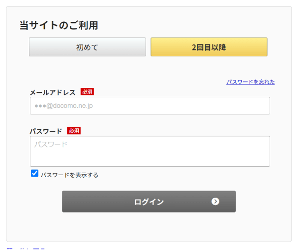 ⇒2回目以降でログインしていない方はこちら