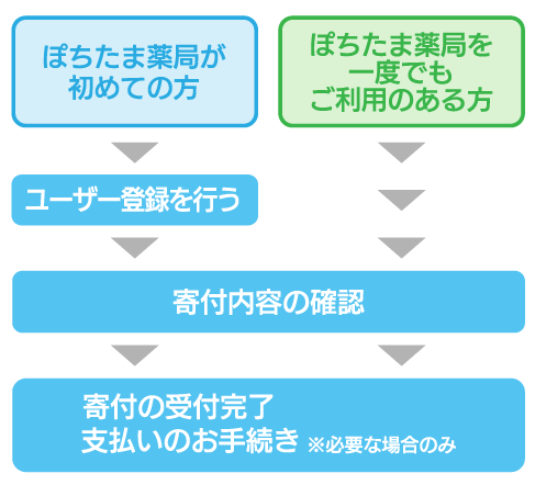 すでにぽちたま薬局のユーザー登録が済んでいる場合は、支援の手続きがスムーズになりますので、先にログインした状態にしておくことをおすすめいたします。